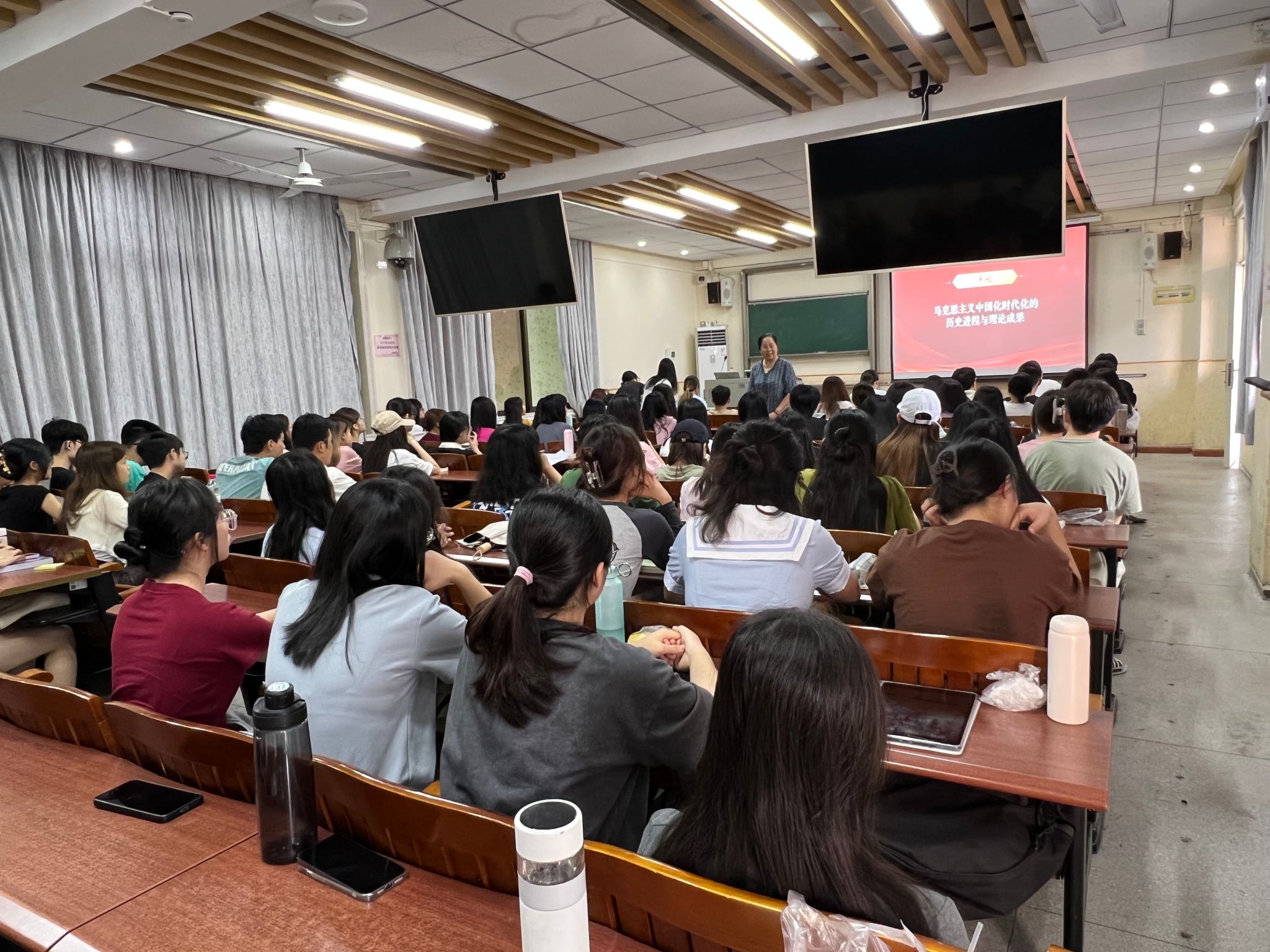 郑玉敏以“马克思主义中国化时代化的历史进程与理论结果”为主题,深入浅出阐释了马克思主义哲学并强调了马克思主义哲学对世界的伟大贡献,有效加深了同学们对马克思主义思想的认识和了解。紧接着,她以自身成长经历作为切入点,结合当下社会的时政热点,向同学们详细讲解了马克思主义中国化时代化的基本历程,引导同学们切实感悟到党的创新理论与中国具体实际相结合所产生的真理力量,带来的巨大变革。