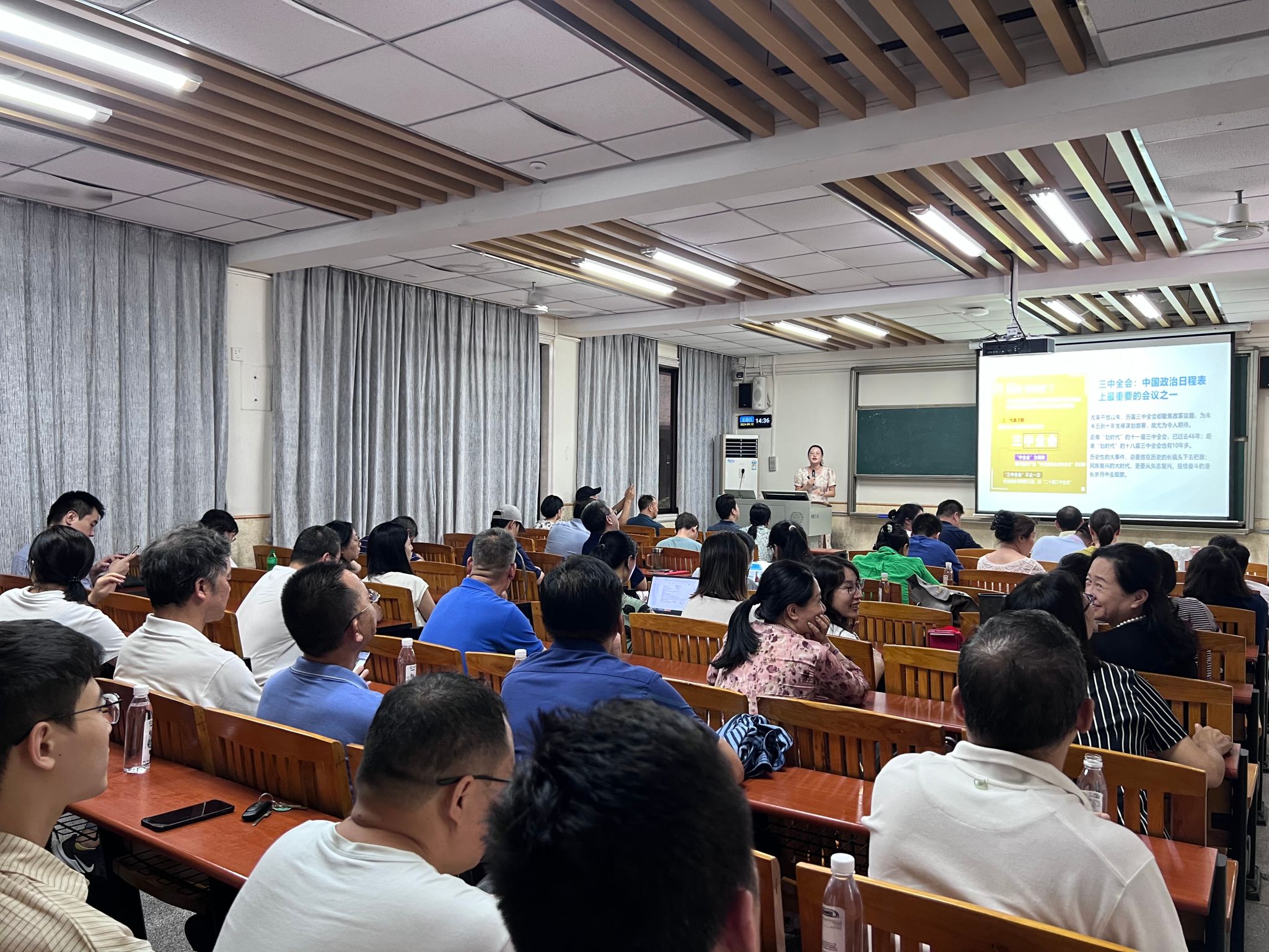 邀请马克思主义学院唐晨诗博士做学习贯彻党的二十届三中全会精神专题宣讲。学院领导杜应发、郑玉敏、梁意红、沈亚萍、黄俊辉、王海洋以及全体教职工参加了学习。
