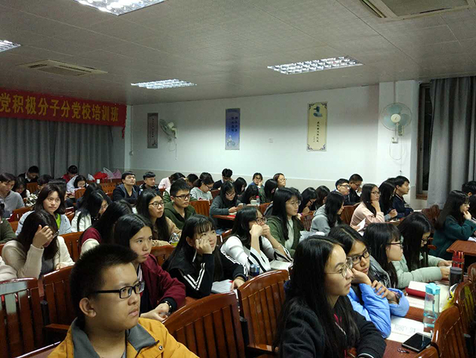 分党校第二十四期第一次培训课于莞城校区课室1409举行。本次培训课的主讲人是潘荣新书记。应到积极分子89人,实到88人。