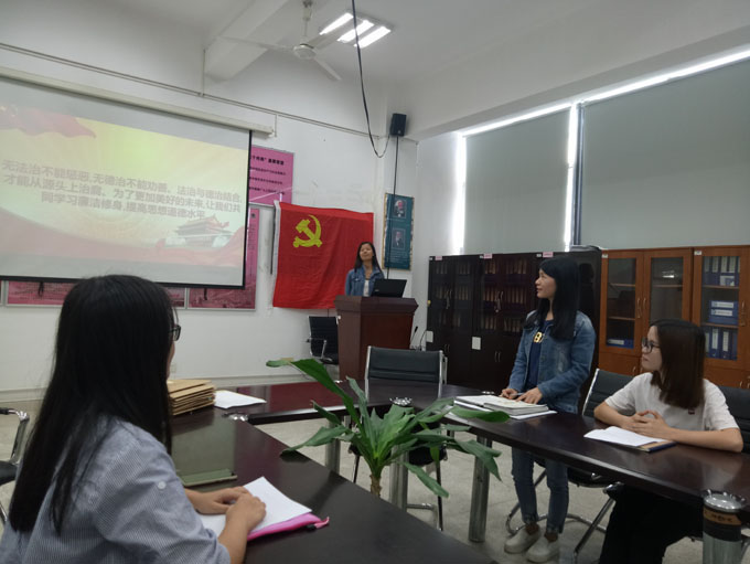 行政管理学生党支部党课在经管楼211召开。本次党课的主题是正确看待党风廉政建设和反腐败斗争的新形势。参与人员为钟丽华老师以及法学支部学生党员。