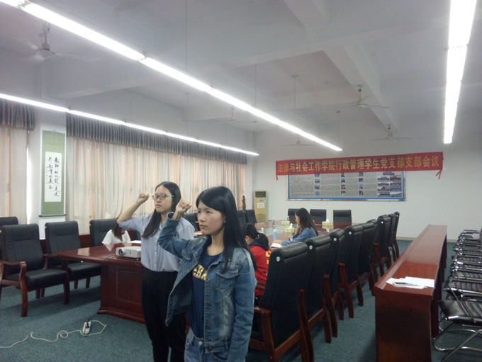 行政管理学生党支部加入了新的成员。党支部希望预备党员能够向身边的优秀党员学习,端正入党动机。也希望正式党员树立一个好榜样,与预备党员共同为班集体、学院以及社会做出自己的贡献。