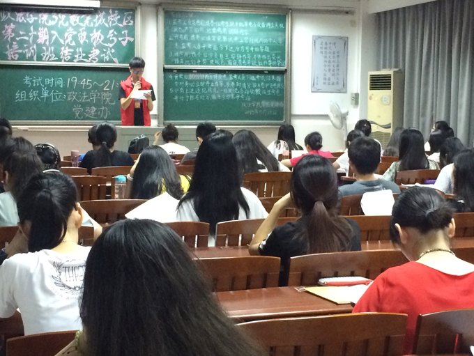 5月28日晚上7点45分,莞城校区1410课室开展了以检验院党课培训成果为目的的入党积极分子结业考试,应到53人,实到52人。
