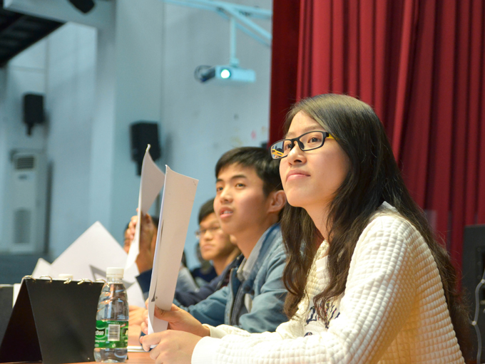 当主持人姚文启宣布比赛开始时,全场开始弥漫着紧张的气氛。经过第一轮比赛后,各选手的分数已经稍稍拉开了差距。观众环节中,个别同学准确答对题目,获得精美奖品并为喜爱的选手加上五分。进入第三轮的风险环节,全场都沸腾起来,观众比选手更加激动,被绝大部分观众看好的吴润芝同学不负众望,敢于接受挑战,在第三轮中获得满分75分,最后以本次比赛最高分进入决赛。
