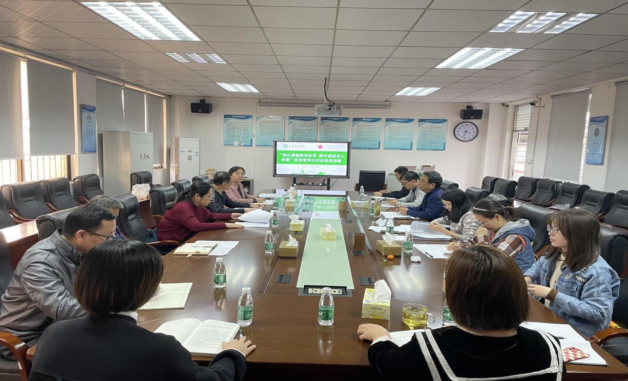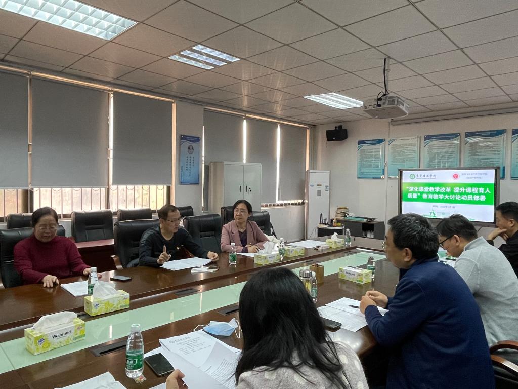 在莞城校区5201会议室召开“深化课堂教学改革 提升课程思政育人质量”教育教学大讨论动员部署工作会议,学院党委书记杜应发、院长郑玉敏、副院长朱晓红、党委副书记丘永辉、副院长沈亚萍、课程思政建设项目负责人及相关人员参加了会议,会议由党委书记杜应发主持。