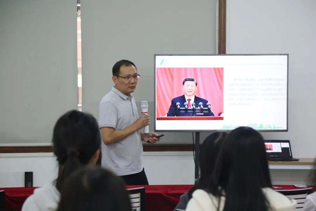 开班仪式后,由学院党委书记杜应发进行开班第一课,杜应发以《做新时代青年,担当复兴大任》为题,以先进榜样为事例,围绕青年的时代担当,激励同学们志存高远,多方论述青年的社会责任,鼓励同学们砥砺奋斗;详细阐述青年的历史使命,勉励同学们锻造本领。
