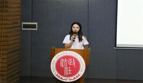 紧接着,团委、学生会执行主席陈智慧进行发言,她对新加入的学生工作者表示欢迎,希望所有成员都能做到有理想、有信念、有担当。