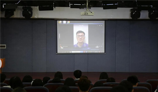 大会伊始,主持人播放了团委书记邱可荣老师、第二十届学生会团委常务副书记方志鑫师兄、第二十届团委、学生会主席袁锡君师兄致辞视频。