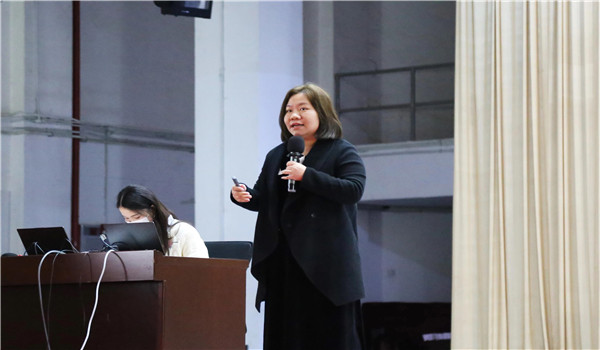 在莞城校区大礼堂举行双创系列赛事动员分享会,学工办主任钟丽华、辅导员刘海波出席本次分享会。