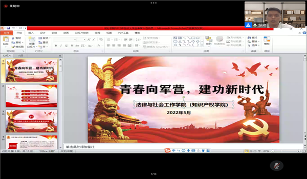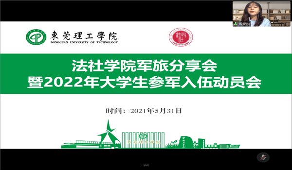 于5月31日晚7点在腾讯会议举行军旅分享会暨2022大学生参军入伍动员会,辅导员邹欢出席本次活动。