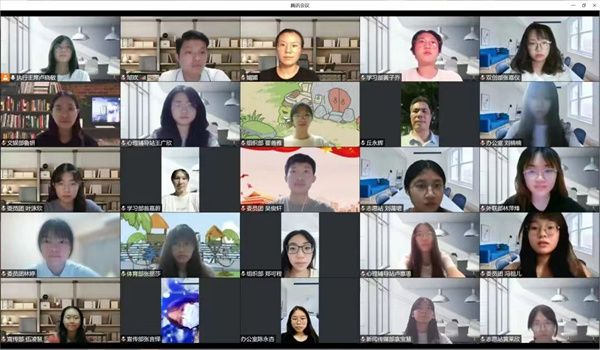 为了增进新任委员团和新任部长团之间的了解,加强学生干部与老师的沟通与交流,我院团委学生会于7月15日晚7:30在腾讯会议软件上召开了第二十三届团委、学生会第一次干部座谈会。本次会议由执行主席卢晓敏主持,党委副书记丘永辉、学工办主任钟丽华、辅导员邹欢和谢媚媚,以及团委学生会全体学生干部出席了本次会议。