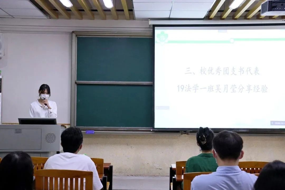 接下来,校级优秀团支部书记代表2019级法学一班吴月莹同学进行经验分享。她就如何平衡好学业和团支书的工作、如何与团员保持密切联系和做好基础团务工作等方面向同学们分享自己宝贵的经验。