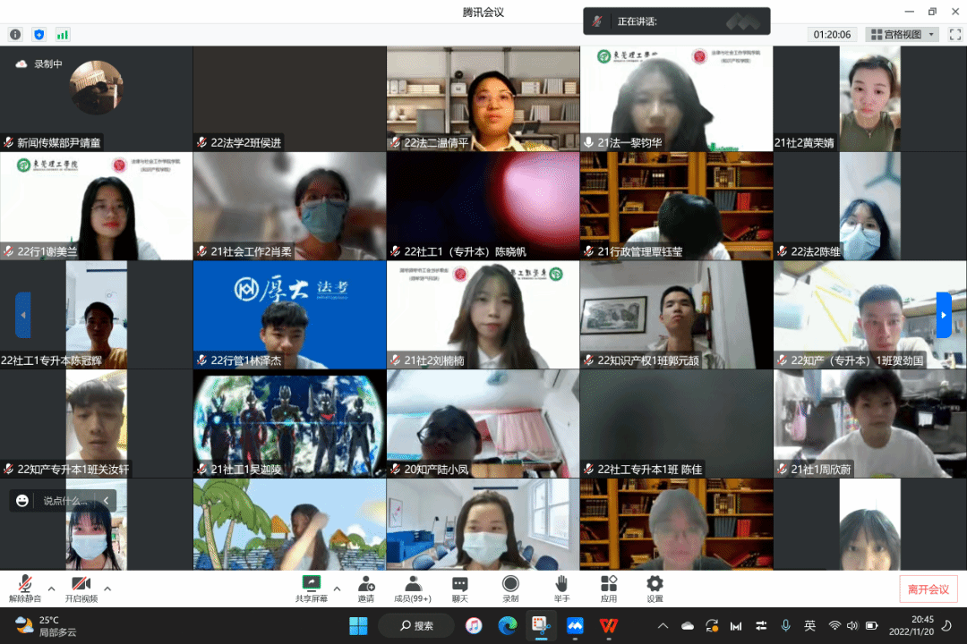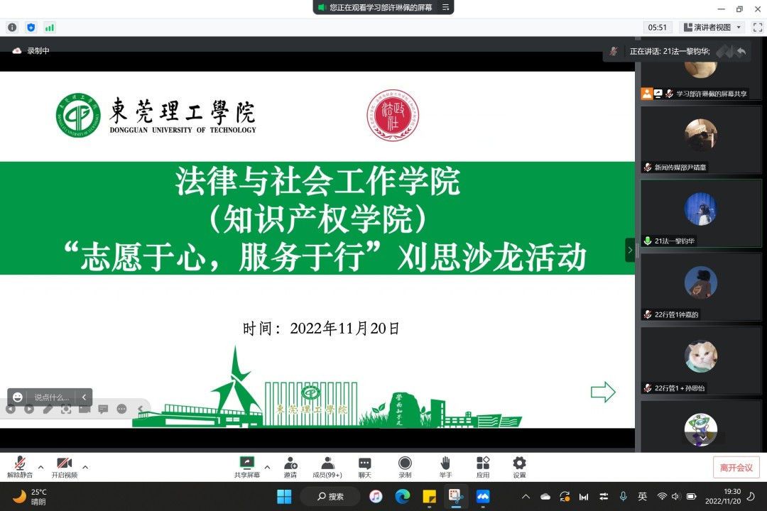 为了激发同学们参与志愿服务的热情,凝聚青春力量,我院于2022年11月20日在腾讯会议举办第二期刈思沙龙:“志愿于心,服务于行”志愿活动分享。本次活动邀请了2021级社会工作2班的刘楠楠同学和2022级行政管理1班(专升本)的谢美兰同学作为主讲人,作为广东省三星级志愿者,她们分享了自己对于志愿服务的独特见解。