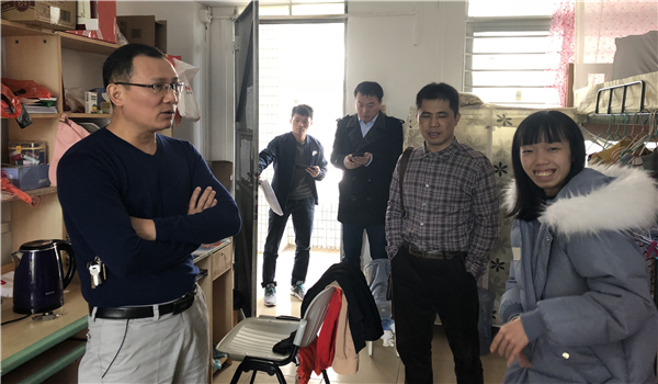 1月20日上午,我院党总支书记杜应发、副书记丘永辉带领学工办全体辅导员,随机走访了寒假留宿同学的宿舍,了解留宿同学期末的实习和工作情况。 走访伊始,杜书记详细的询问同学们留宿的情况,了解到同学们大部分是因为实习、参加寒假社会调研等原因,其中还有一部分同学是因为购票时间比较晚,需要留宿一段时间。在走访的过程中,杜书记跟留宿的同学亲切交谈,聊生活、聊学习,同时也对留宿的同学提出了几点要求:一是要及时向家人和老师说明自己回家的时间,避免引起家人不必要的担心;二是在留宿期间要注意人身安全和财产安全,注意宿舍的防火防盗;三是要严格遵守学校关于留宿的相关规定。有什么特殊情况要及时向社区服务中心和辅导员报备。丘永辉副书记在交谈的过程中也再次向同学们叮嘱,要特别注意人身财产安全,最后离校的同学要锁好门窗等生活细节。 走访最后,全体老师为同学们送上了新春祝福,希望同学们能够开开心心的度过假期,并利用假期好好调整自己状态,迎接新的一年。