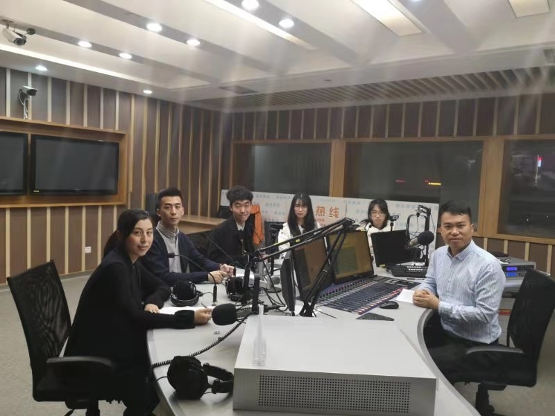 安之楠老师带领四名学生,一同前往东莞市广播电视中心,参加空中普法基地--东莞电台阳光1008《与法同行》的播出,与主播江晓共同讨论此案。