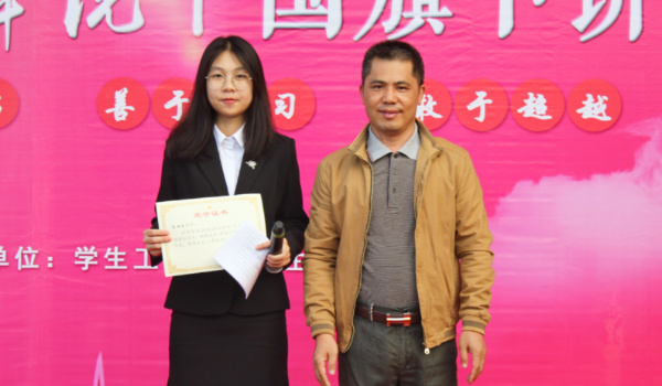 丘永辉副书记为李雨洙同学颁发荣誉证书