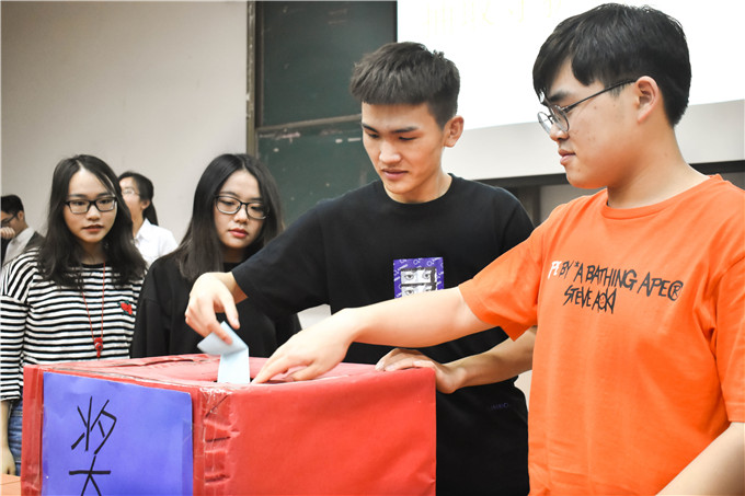 在大会开始前,每个人在签到后需要填写自己的心愿并投入抽奖箱中,用于抽取“守护天使”环节。在主持人介绍完到场嘉宾后,开始会议第一项流程——八大部门的部长依次上台发言,各部长总结以往工作以及在新学期里对部门干事的期望和后面工作的展望。紧接着的是干事发言,这次采用了创新且有趣的“微信跳一跳”输赢随机决定发言人的方式,各部门干事代表上台发言。随后到了令人激动的抽取“守护天使”的环节,主持人解释游戏规则后,每个人都上台抽取自己要守护的人,此游戏有利于促进学生会各个部门间的沟通和交流。然后,学生会主席陈慧聪发言。她希望大家能够更加积极参与学生会的集体活动,并宣布学生会开通了专门的邮箱用于广纳意见和建议,最后也提醒同学们在学习生活中要注意身体。随后,由邹欢老师进行发言,老师指出大家要勇于承担学生干部的责任,积极为组织贡献自己的力量,还要积极协助其他部门,在完成工作的过程中努力发掘自身的才能,这是一个不断提升自我的过程。最后,老师建议同学们可以多和老师沟通交流,多汇报工作,大家一起不断进步。