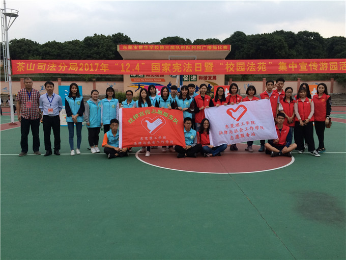 团总支志愿服务站与法律宣传服务队共赴东莞市誉华学校协助东莞茶山司法分局开展“12·4宪法日”活动。