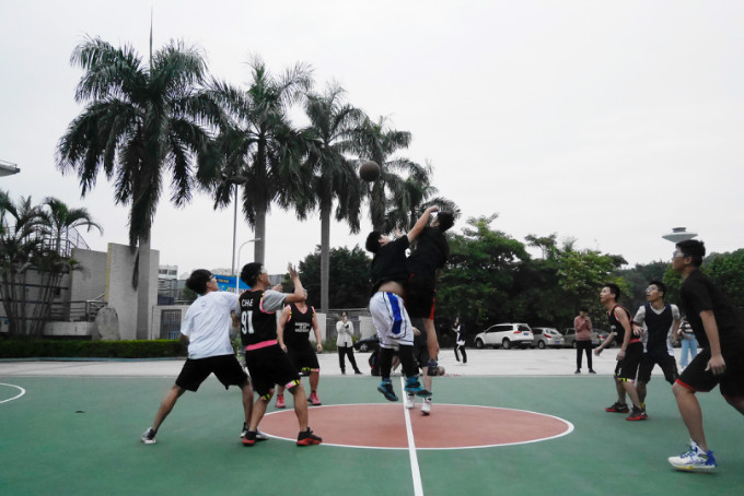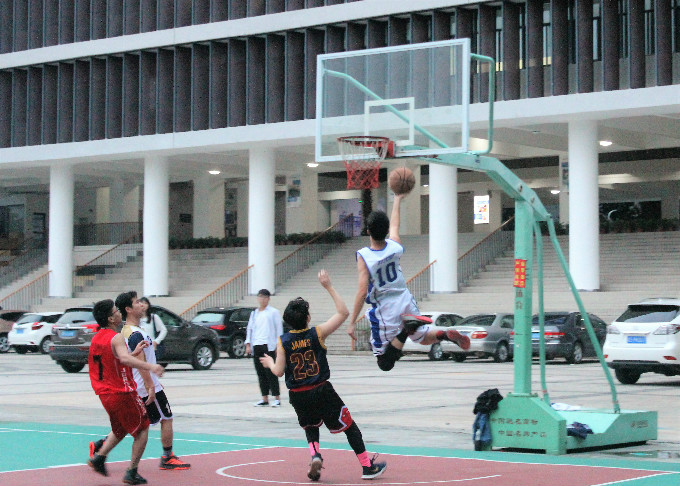 篮球赛在图书馆前的篮球场进行。参赛班级分别为17法二队伍对战15社二队伍、16法二 队伍对战14级行管队伍、16级行管专业队伍对战17级社二和行二组成队伍、14法学队伍对战15法学队伍。