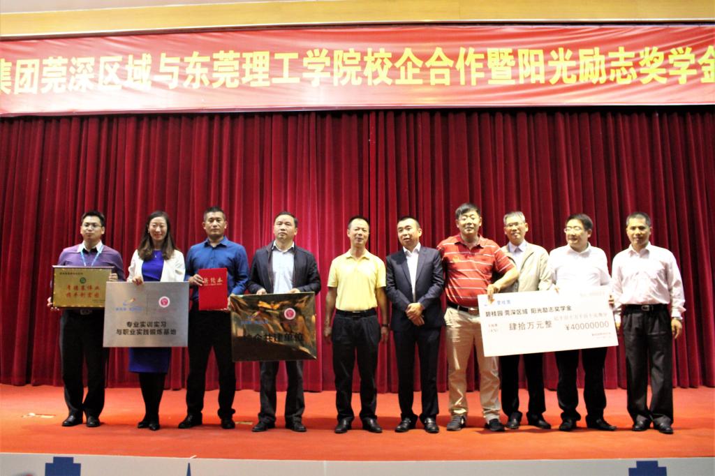 校企共建暨设立奖学金仪式”。碧桂园集团莞深区域常务副总裁张剑、物业公司总经理代涛、总裁助理王丽莎等企方代表出席仪式,学校副校长李忠红、发展联络办主任崔学海、av在线