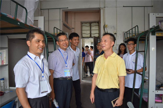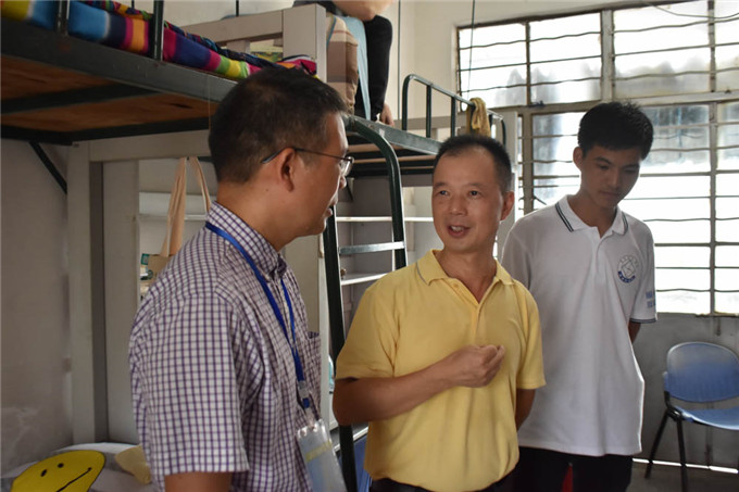 的强昌文院长与潘荣新书记在相关工作人员的陪同下到学生宿舍进行了走访,看望新生。
