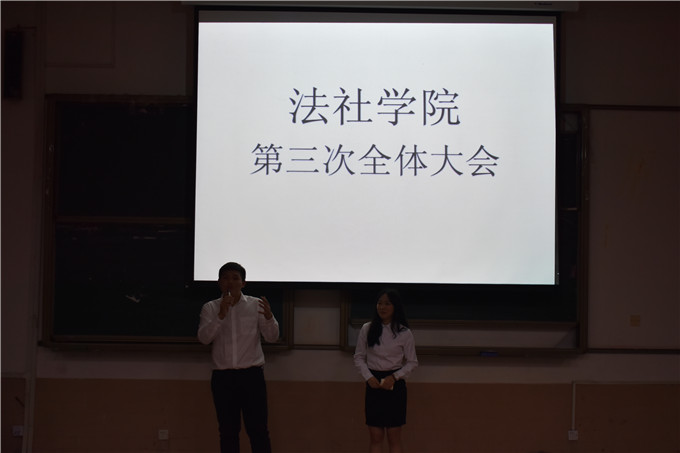 学生会在莞城校区5#1课室举行了第三次全体大会。会议共分为8个环节,分别是主席讲话、IQ题、工作总结、互动环节、会议总结、抢麦环节、颁奖环节和合唱会歌。