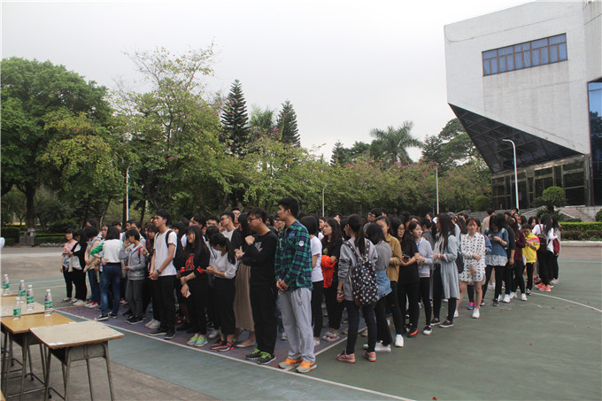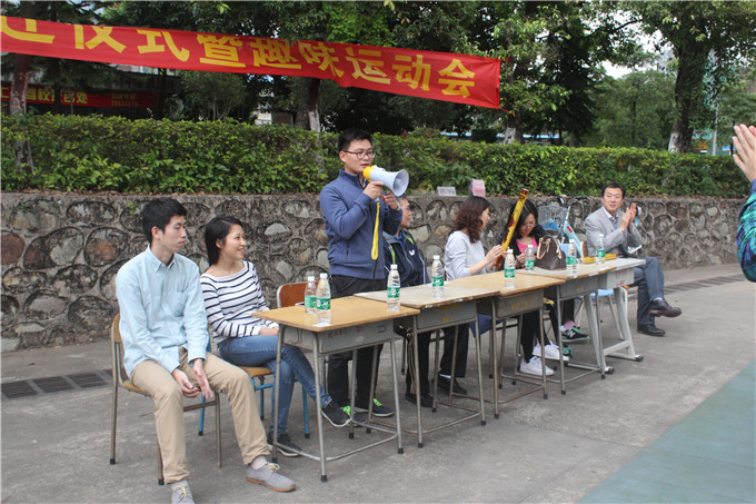 在莞城校区大礼堂前篮球场举行趣味运动会开幕仪式。学院党总支书记潘荣新老师、班级班主任、学院辅导员老师以及av在线