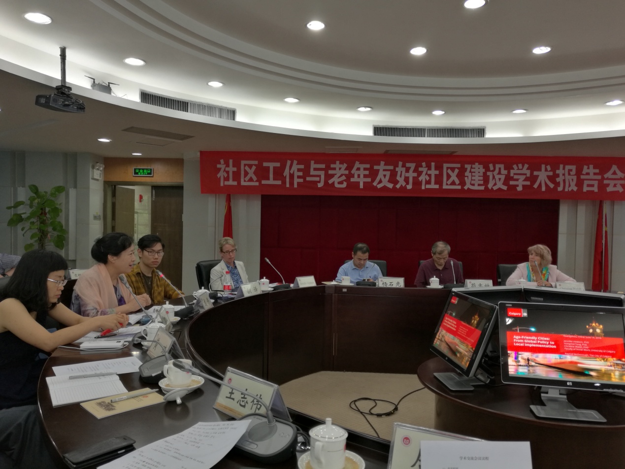 专家、市社工协会专家、市社科院专家参与交流。交流会上,加拿大卡尔加里大学社会工作学院Christine Walsh副院长、Jennifer Hewson副教授和童红梅博士分别作了学术报告,分享他们关于社区发展政策与老年友好社区问题的研究成果,成伟教授就社区工作在东莞的发展做了主题发言,并与卡尔加里大学专家关于老年社会工作相关议题进行了深入的探讨。