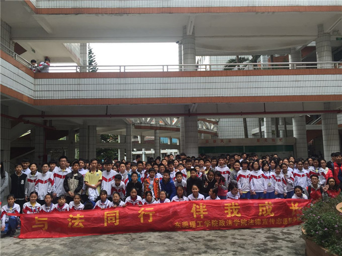 政法学院法律宣传志愿服务队队员到达大朗镇大朗中学进行校园普法活动。为了能让初一4个班级的同学们更好的了解以及运用《未成年人保护法》,讲师们精心制作了ppt。同学们的参与热情高涨,这个普法过程细细聆听,积极配合。