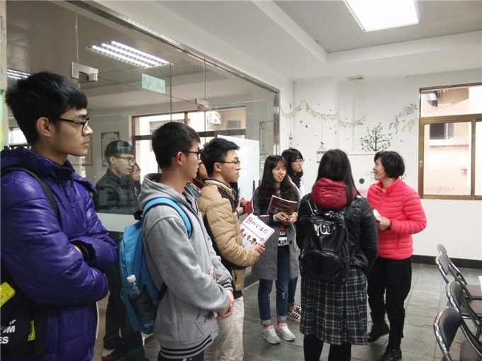 在社区中心主任王沙沙的带领下,志愿站一行人首先对社区进行了参观,对其机构设置和人员调配情况进行初步了解。