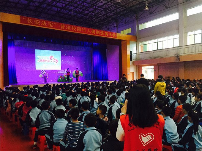 政法学院法律宣传志愿服务队一同来到东莞市长安镇厦岗小学,举办一场名为“让法律融润生活”的活动,并希望通过人偶舞台剧等方式,向小学生传播关于《中华人民共和国未成年人保护法》的相关知识。