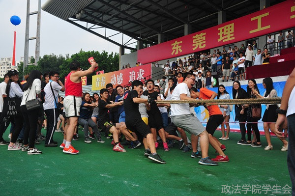 开幕式过后,运动场上迎来了一系列的体育竞技,有趣味运动、跳高、跳远、铅球、田径比赛。田径场上,气氛高昂,一片热火朝天,政法学子在运动会上,奋力拼搏,接连取得好的成绩,尽展政法风采。比赛中最精彩的是百人拔河项目,政法学院的老师前来为上场学生助阵,政法学子在一个个强劲对手前永不退缩,稳住步伐,把胜利的红绳拽往自己那一方,最终获得了第三名的好成绩。