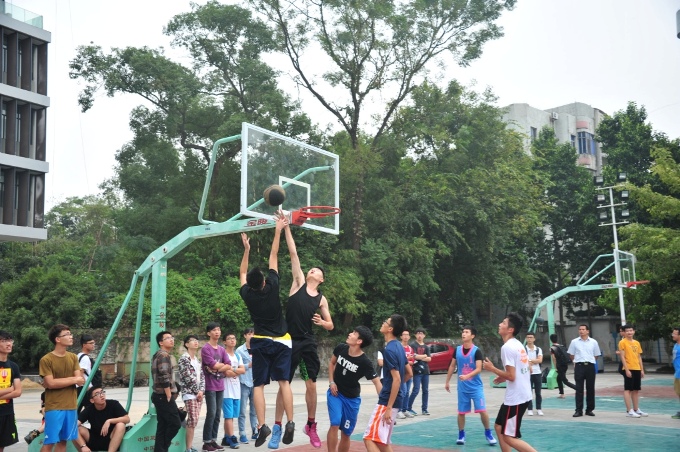 11月11日下午16时30分,政法学院学生篮球赛在莞城校区图书馆前篮球场举行。此次篮球赛是大一对阵大二,师弟对阵师兄可是相当有看头。