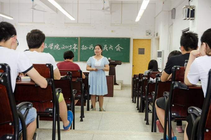 为响应教育厅,东莞市征兵办公室工作会议的精神,做好夏秋季节的征兵工作 。在经管楼举行了本次的会议,此次会议的内容主要是介绍大学生入伍的相关优抚待遇。此次的会议由政法学院辅导员钟丽华主持。