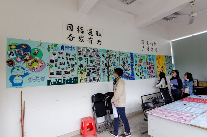 评比伊始,政法学院学生会主席叶创新带领评委组们到学生会办公室,并详细介绍学生会各部门的风采展示和日常的工作流程和细节,让评委们更加了解政法学院学生会内部建设和外部风采。而正在此时,考察人员也对会议室内的委员们进行笔试,此次笔试是为了考察委员们对学生组织的了解情况和对学校整体的活动是否了解。