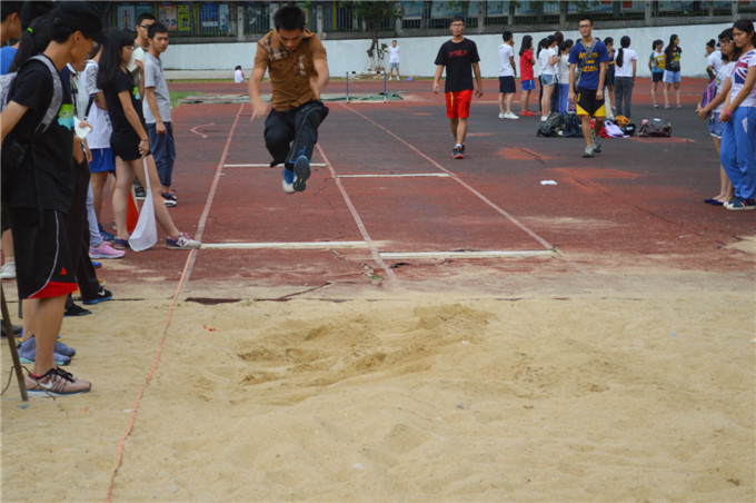 10月22日下午,政法学院运动会选拔赛在莞城校区运动场开展。赛事包括跳远、200米和400米赛跑。参与人员有院学生会体育部、运动员、维持秩序的志愿者和观众。