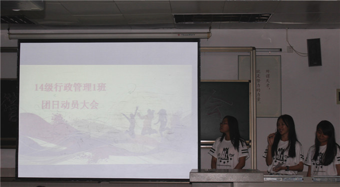 10月28日晚上7:30,政法学院14行政管理1团支部在莞城校区3401课室召开了团日活动动员大会。大会由14行政管理1团支部团支书主持,围绕团日活动的目的与意义、三项活动的可行性分析和小组工作分配等议题进行宣讲。