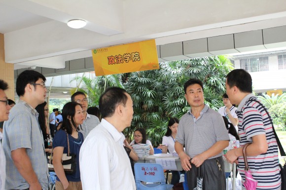 9月4日,政法学院院长徐波教授,在政法学院党总支副书记潘荣新老师、政法学院副院长邹琼老师的陪同下到政法学院迎新接待站视察工作,了解整体工作进展情况。