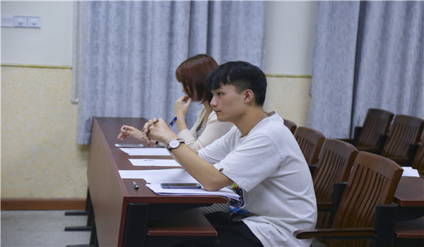 的20位同学以及法社团学文娱部成员担任评委。比赛的第一个环节,每位参赛选手上台在黑板上写下自己的名字并进行30秒的自我介绍。参赛选手带着紧张又激动的心情介绍自己。随后是朗诵环节,各位参赛选手自备题目,给大家带来了五分钟声情并茂的朗诵。选手们以生动的语调、饱满的精神,积极向上的朗诵内容,感染着在座的每位评委。