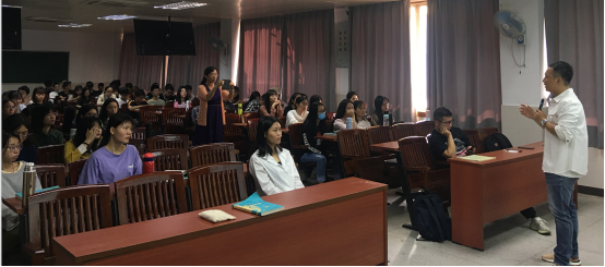 付俊老师在东莞全媒体av在线先后任职《体育·莞》栏目制片人,是《今日莞事》微信公众号负责人、两微(微信、微博)负责人、视频融合产品“莞视频”创始人以及负责人、全媒体av在线媒体融合运营组组长,一直奋斗在媒体融合的第一线,善于各类短视频创新制作等等,其作品多次获得省市新闻奖。付俊老师给我们分享的是“互联网运营的那点事”,他强调新媒体是一种符合平台规则的表达方式,强调互联网思维中“用户思维”以及在当下我们需要具备的逻辑思维能力、文案撰写能力、创意能力,鼓励感兴趣的同学学习新媒体运营,并给予我们胜利锦囊“你的标签永远比你的内容更重要”。