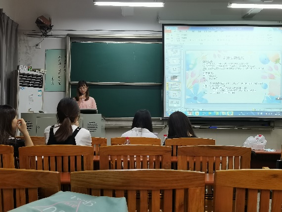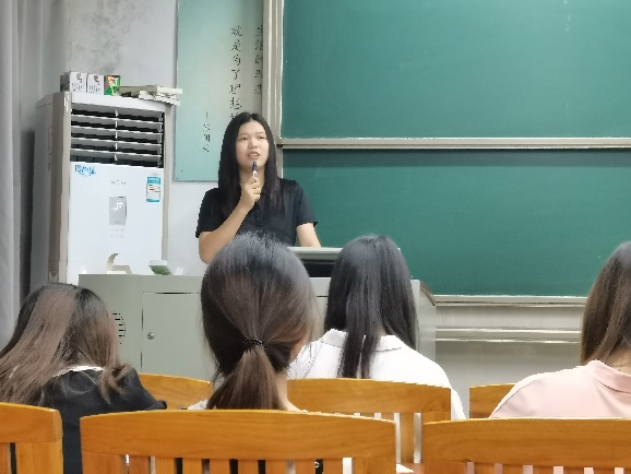 选拔赛主赛道一等奖等多项奖项,王丽诗学姐曾获国家励志奖学金。紧接着,吴少芬开始她的分享。她先简介地描述了一下她参加学校或者国家相关大赛的历程,用亲身实践告诉与会的师弟师妹们要多去参加校级组织、相关活动的重要性。对于人际交往方面,她也传授了一些相关经验,要多去积累人脉,因为逐渐扩大的朋友圈,会成为以后的资源和财富。吴少芬认为,兴趣就是最好的老师,要遵从自己的兴趣爱好,并且不断发掘,让你的兴趣爱好成为你的发光点。同学们听的津津有味,并且向学姐积极提问参加大赛的注意事项,学姐也流利地一一回答,会场井然有序。最后,由国家奖学金获得者王丽诗做分享。王丽诗也是在大一大二积极参加学校活动,担任校级干部,为以后发展奠定了良好的基础。同样地,她也认真主抓学习,勤奋努力,成绩一直都是名列前茅。她积极向上的学习态度感染了在场的各位,老师同学们都纷纷为此鼓掌、点赞。
