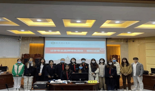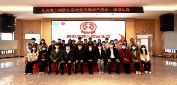 (知识产权学院)的品牌特色活动,法学专业的“模拟法庭”活动已经形成了一套走出去引进来的组织活动机制。邀请法院、司法局和律师事务所参与《模拟法庭》课程实践教学,对“模拟法庭”竞赛进行指导和评审,有效地实现了校地间的资源互通和优势互补,是沟通校地资源协同培养高水平人才,服务地方法治的重要渠道。为东莞多个中小学、社区、工厂开展法治宣传,服务地方提升地方普法的精准性,是一个具有较强的引导示范力和可复制性的法治宣教优秀品牌活动。