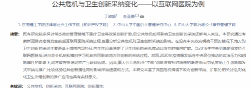 论文《公共危机与卫生创新采纳变化——以互联网医院为例》发表在《中国行政管理》2021年第11期,该文关注我国医疗卫生服务递送的一种重要创新互联网医院及其服务,深入考察重大公共卫生危机发生前后互联网医院采纳的动态过程,着重分析公共危机对卫生创新采纳的影响。该文同时获东莞市第四届哲学社会科学优秀成果奖。论文《改革开放以来城市青年住房政策的演变及其动力机制研究——基于社会建构的视角》发表在《青年探索》2022年第4期,全文被中国人民大学复印报刊资料《青少年导刊》2022年第12期转载,论文基于目标群体社会建构与政策变迁理论考察改革开放以来我国城市青年住房政策的演变特点、动力与机制。