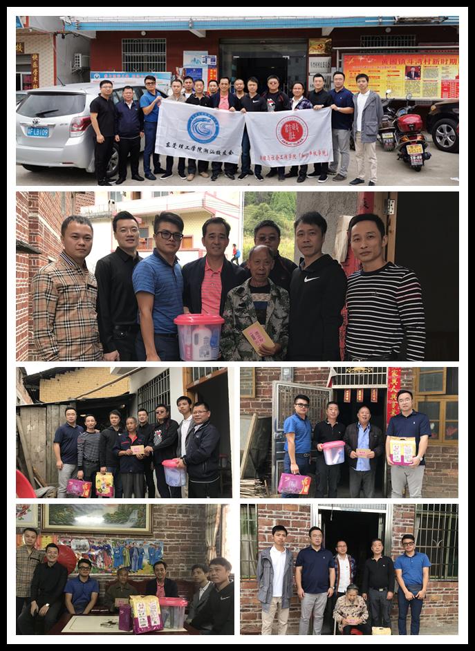 校友会会长郑文峰、常务副会长简福权、副会长陈炳辉、秘书长李溯携手潮汕校友会会长江怀、常务副会长张慰亮、常务副秘书长许跃凯一行前往我校对口帮扶点韶关乐昌市黄圃镇开展扶贫关爱行动。