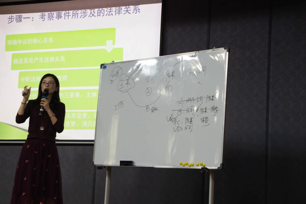 讲座中,李铮铮法官凭着自己从事民事审判业务工作14年积累的经验和丰富的阅历,深入浅出地给大家讲解及分析了法律关系分析法与请求权基础分析法。不仅分别讲授了两种方法的概念、要素与运用步骤,而且强调了请求权基础分析法作为“民法利器”在实际运用的重要性。李法官以6组真实民事纠纷让大家进行思考,引导思路,让同学们意识到夯实法理学基础的重要性,体会到自己分析案例带来的查缺补漏的益处。同学们学习态度热情高昂,认真思考案例提出观点,勇于提出疑问,积极地和李法官进行互动,现场气氛十分活跃。