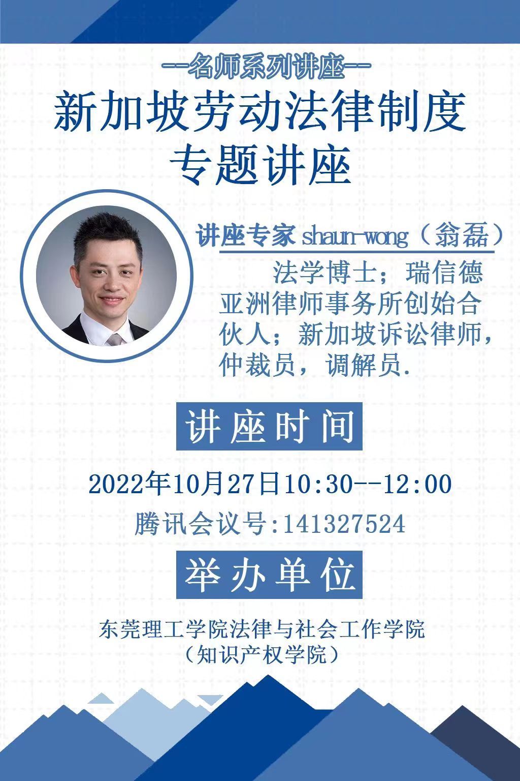 讲座预告:新加坡劳动法律制度专题讲座-翁磊