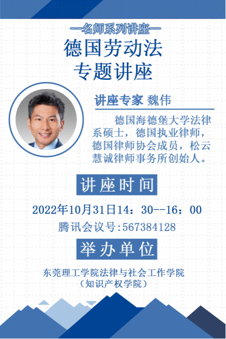 (知识产权学院)顺利举办了以“德国劳动法”为主题的学术讲座。本次讲座主讲嘉宾为德国执业律师、松云慧诚律师事务所创始人魏伟律师。参加本次讲座的人员有av在线