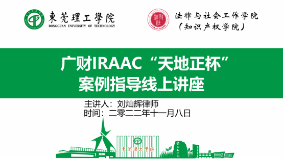 (知识产权学院)法律系举办了广财IRAAC“天地正杯”鉴定式案例分析大赛的线上指导讲座,本次讲座特邀广东法制盛邦(东莞)律师事务所刘灿辉律师主讲。