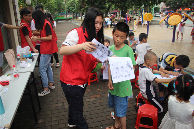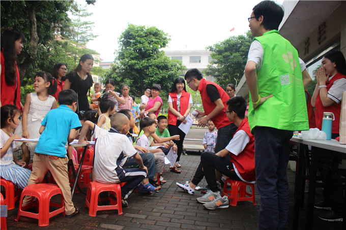 活动伊始,志愿者们通过表演两段简短的情景剧来向在场的小朋友们详细地介绍与讲解了汤姆立克急救法,这让小朋友们对急救知识有了初步的了解;随后志愿者们细心地为小朋友们演示了脚踝的包扎法以及手脚擦伤之后的相关应急措施,以便于让小朋友们更好地将这些技能在必要时运用到生活当中。演示完后,志愿者们让小朋友们填写好关于急救措施的问卷,并为有疑惑的小朋友进行详细的解答。在全体志愿者与社工的合作与努力下,活动开展的非常顺利。最后全体人员进行了合影留念。