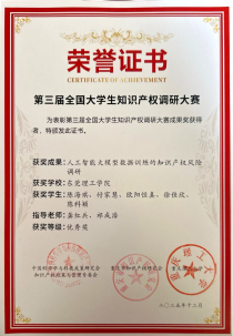 在2025年第三届全国大学生知识产权调研大赛中,知识产权学院的两支队伍凭借扎实的调研能力与创新的研究视角,均荣获优秀奖。