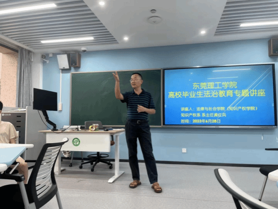 (知识产权学院)的龚红兵老师为为2023届高校毕业生讲授法治教育专题讲座。